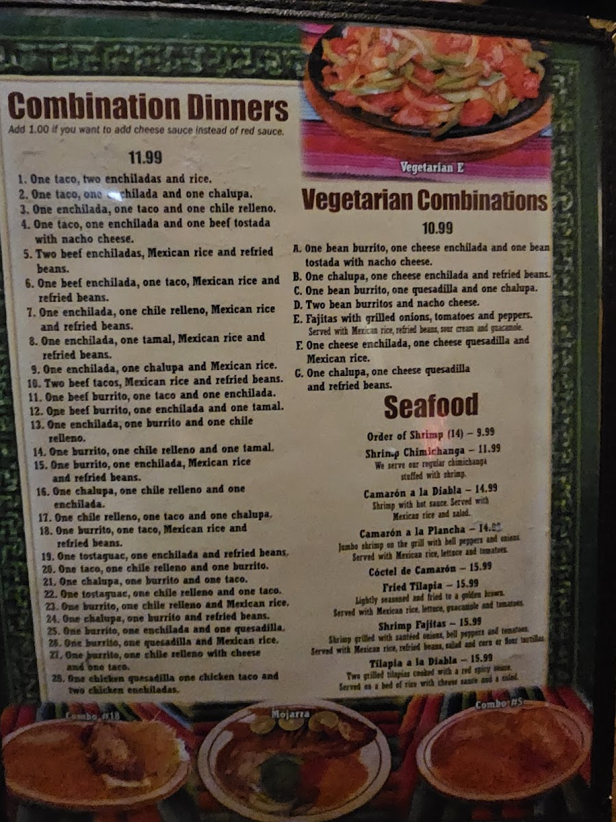 Start your culinary journey with their renowned Fajitas, featuring tender marinated chicken or beef skirt steak, sautéed with onions and bell peppers. Each dish is complemented by fresh toppings such as guacamole and pico de gallo, creating a delightful balance of textures and flavors. For a satisfying vegetarian option, try their combinations that include mouthwatering Cheese Enchiladas and Bean Burritos.